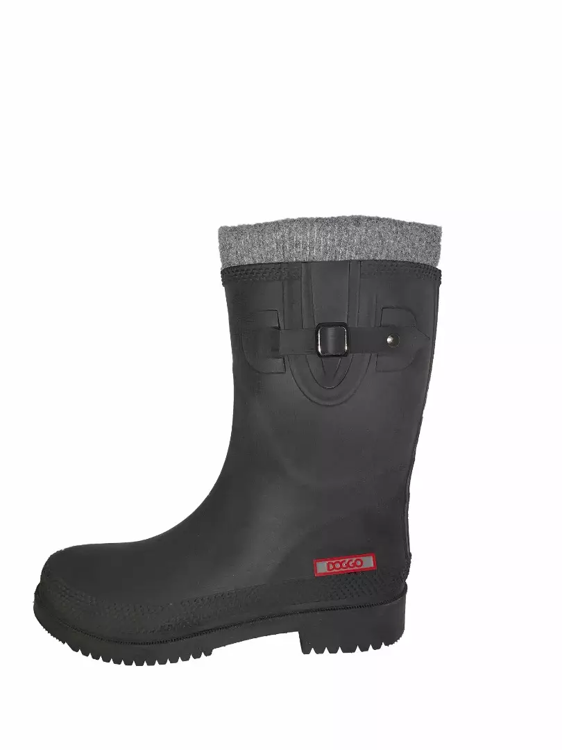 Modieuze DOGGO dameslaars in PVC, 3/4 hoog, met bijpassende kleur buitenzool en decoratieve gesp aan de zijkant. De jarenlang beproefde pasvorm garandeert een comfortabele loop. De gripvaste en antislip buitenzool ondersteunt je tijdens het wandelen in de regen of over de natte weide. Het geborstelde oppervlak (lederlook) maakt deze schoen een echte eyecatcher. De warme voering van Lotte Winter garandeert ook op koudere dagen warme voeten. De schoen valt 1 maat kleiner door de warme voering.