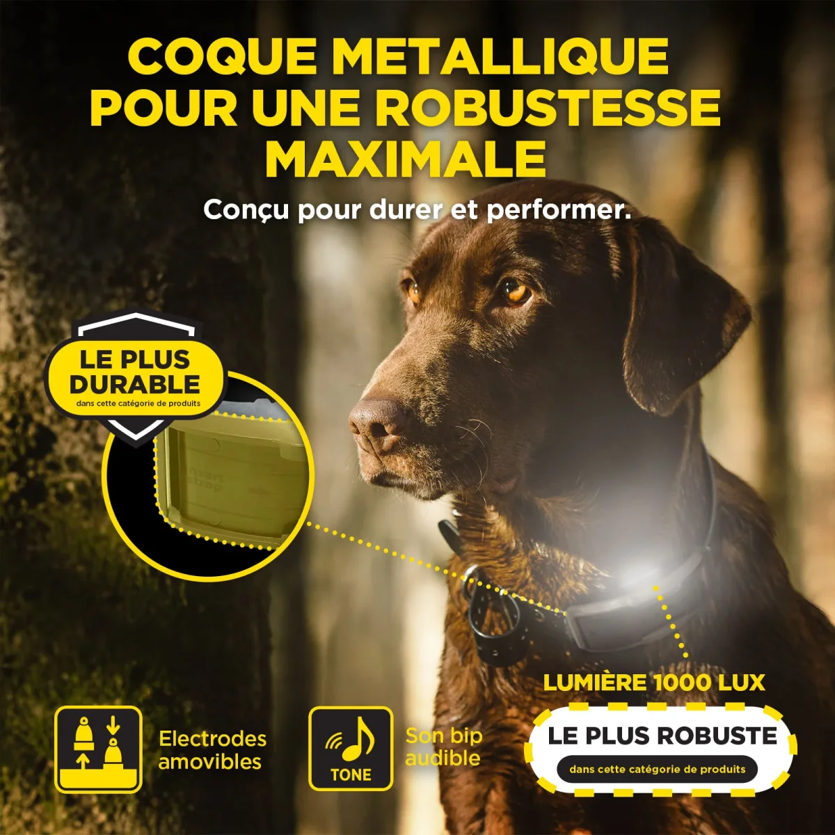 • Lumière LED blanche sur le collier
