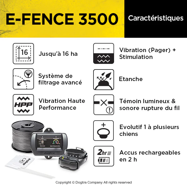 De DOGTRA E-FENCE 3500 is een professioneel elektronisch afrasteringssysteem dat honden veilige bewegingsvrijheid biedt binnen een duidelijk afgebakend terrein. Dit systeem is ontworpen voor hondenbezitters en professionals die controle willen combineren met vrijheid, zonder fysieke afrasteringen zoals hekken of gaas.