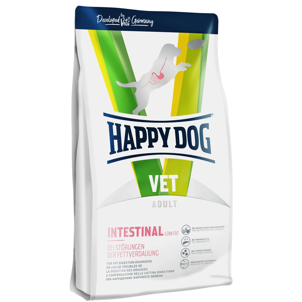- Voor zover de dierenarts niets anders aanbeveelt, meerdere kleine maaltijden Happy Dog VET Intestinal Low Fat per dag geven.