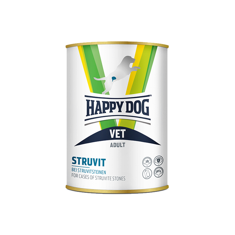 - Voor een optimaal effect alleen Happy Dog VET Struvit geven. Eventueel aanvullende voeding moet je bespreken met je dierenarts.