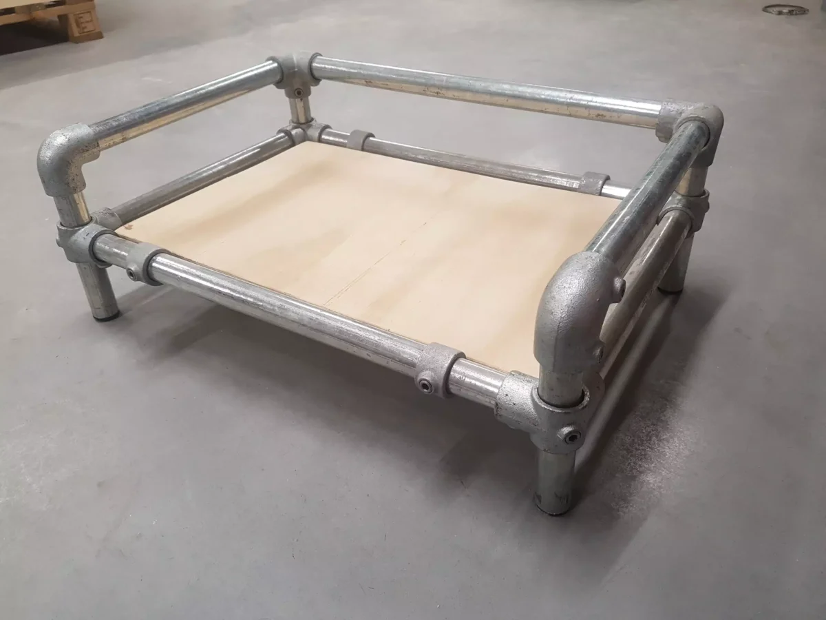 Hondenmand / hondenbed van steigerbuis, industriële look door de verzinkte buis!