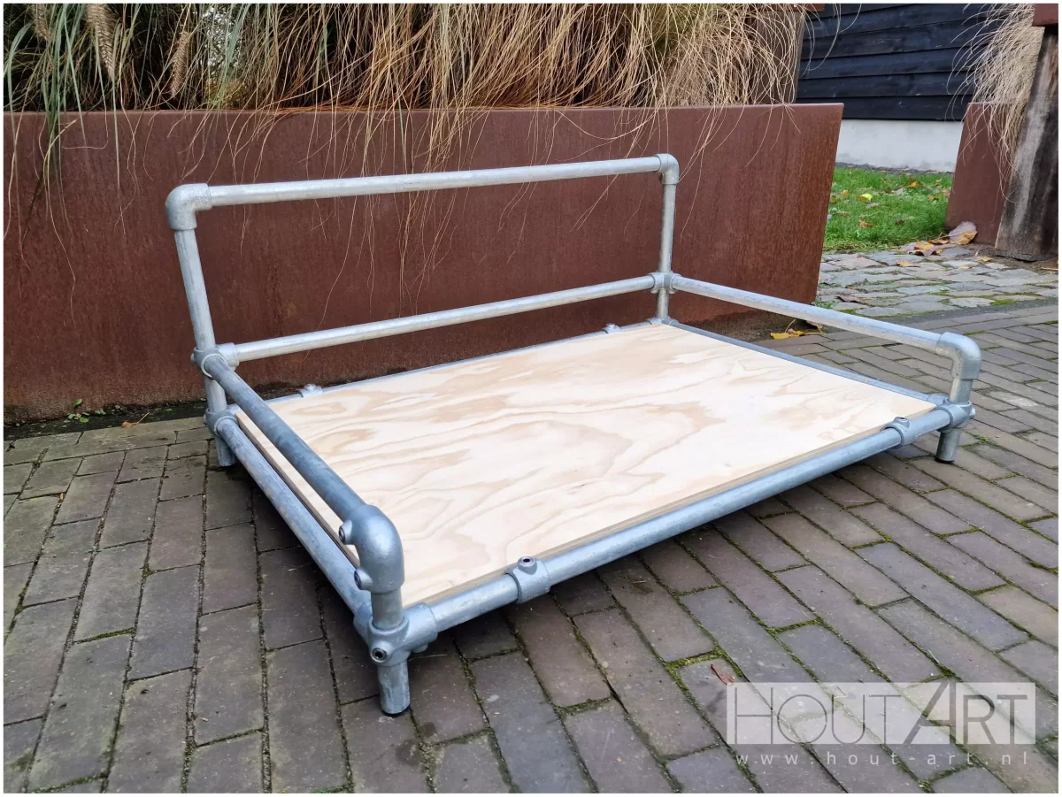 Hondenmand / hondenbed met hoge achterkant van steigerbuis, industriële look door de verzinkte buis!
