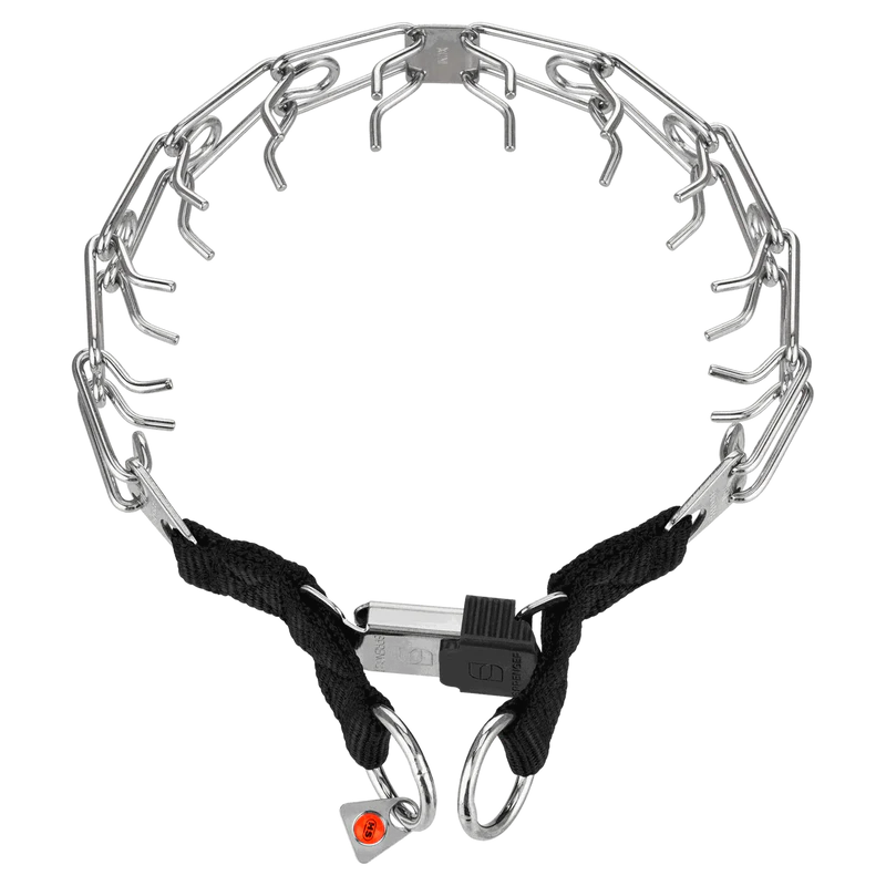De sluiting voorkomt dat de halsband per ongeluk opengaat, iets wat bij traditionele kettinghalsbanden soms kan gebeuren. Hierdoor kunnen eigenaren en trainers met een gerust hart werken, weten dat de hond veilig blijft, en dat de halsband niet losraakt tijdens een kritieke situatie.