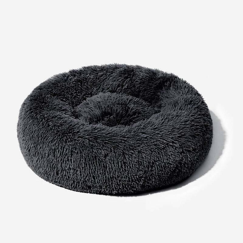 Dit ronde huisdierenbed is bedoeld voor gebruik binnenshuis door honden en katten als rust- en slaapoppervlak. Het heeft een donutvormige vorm met opstaande randen waardoor huisdieren erin kunnen liggen of hun kop tegen de zijkanten kunnen laten rusten. Het bed is gemaakt met een pluche stoffen buitenkant en gevuld met zachte vulling, en het wordt direct op de vloer geplaatst. Een afneembare hoes is inbegrepen om regelmatig schoonmaken mogelijk te maken als onderdeel van de routinematige verzorging van huisdieren.