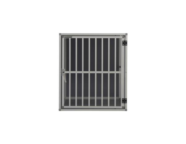 Het ontwerp van de Hundos Hondenbench model DK maat L rechts is gericht op eenvoud en gebruiksgemak. De deur opent en sluit soepel en betrouwbaar, waardoor de hond gecontroleerd in en uit de bench kan stappen.