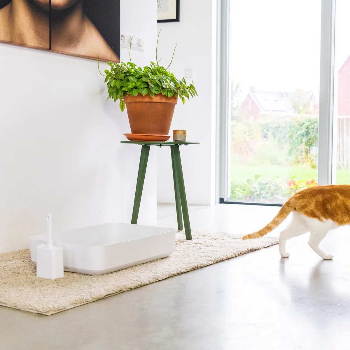 De kattenbak Hoopo Poh heeft een prachtig design dat naadloos aansluit bij elke interieur stijl. Deze minimalistische kattenbak bestaat volledig uit milieuvriendelijk plastic. De Poh is erg compact, wat hem uiterst geschikt maakt in kleine ruimtes. Zo is deze kattenbak ideaal te plaatsen in een klein appartement, zonder dat de aanwezigheid van een kattenbak, overheerst.