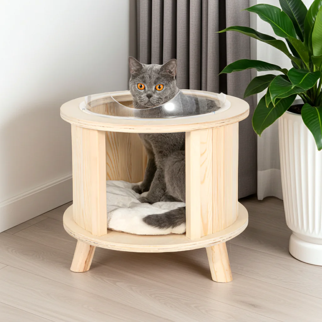Het transparante ovale kom ontwerp van de kattenmand zorgt voor een eigentijdse en unieke uitstraling, waardoor het een opvallend element wordt in elk interieur.