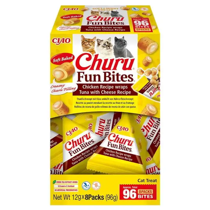 Ciao churu Fun Bites Wraps zijn super lekker en je kat zal er niet aan kunnen weerstaan! Deze heerlijke snoepjes voor katten worden gemaakt van hoogwaardige ingrediënten zonder granen, conserveermiddelen of kunstmatige kleurstoffen. Naast kip en tonijn bevatten deze lekkere snacks ook kaas. Heb jij een cheese-lover in huis, dan wordt dit zeker een hit?