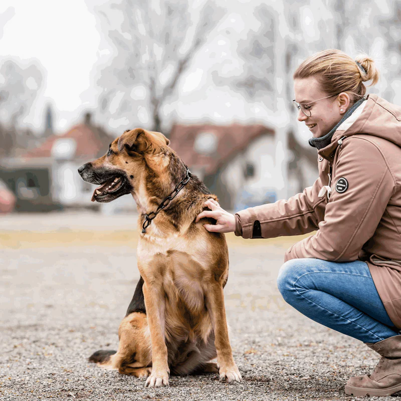 Met onze hondenhalsband van roestvrij staal is je viervoetige vriend klaar voor de volgende trainingssessie. Het robuuste materiaal is roestvrij, weerstaat wind en weer tijdens lange wandelingen en is ook ideaal voor waterratten. De lange kettingschakels zijn bijzonder vachtvriendelijk en verminderen haarbreuk met lange en fijne vacht. Omdat de ketting over het hoofd van de hond getrokken moet worden, moet je ook rekening houden met de hoofdomtrek bij het kiezen van de juiste maat! Voor honden met een aanzienlijk grotere kopomtrek dan nekomtrek raden we kettingen met ClicLock-sluiting of SPRENGER-haken aan voor een optimale pasvorm. Indien nodig kun je een individuele trekstop met een beugel toevoegen.