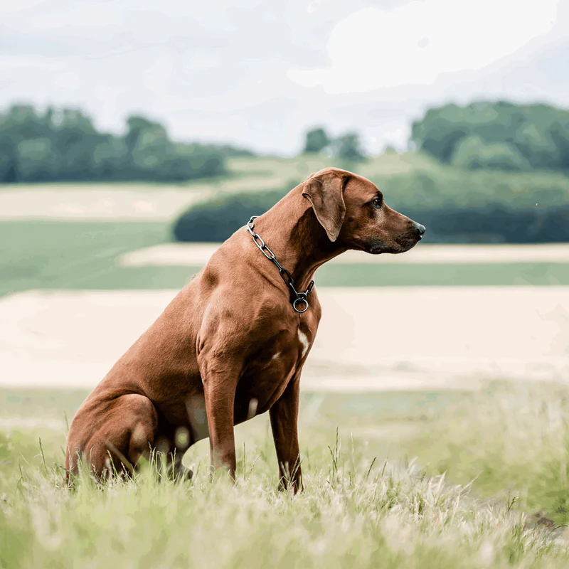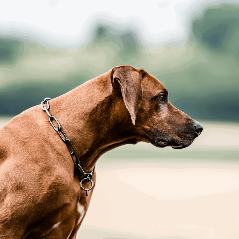 Met onze hondenhalsband van roestvrij staal is je viervoetige vriend klaar voor de volgende trainingssessie. Het robuuste materiaal is roestvrij, weerstaat wind en weer tijdens lange wandelingen en is ook ideaal voor waterratten. De lange kettingschakels zijn bijzonder vachtvriendelijk en verminderen haarbreuk met lange en fijne vacht. Omdat de ketting over het hoofd van de hond getrokken moet worden, moet je ook rekening houden met de hoofdomtrek bij het kiezen van de juiste maat! Voor honden met een aanzienlijk grotere kopomtrek dan nekomtrek raden we kettingen met ClicLock-sluiting of SPRENGER-haken aan voor een optimale pasvorm. Indien nodig kun je een individuele trekstop met een beugel toevoegen.