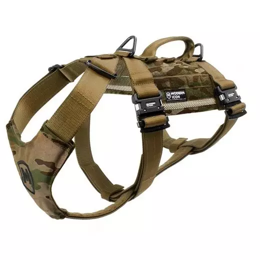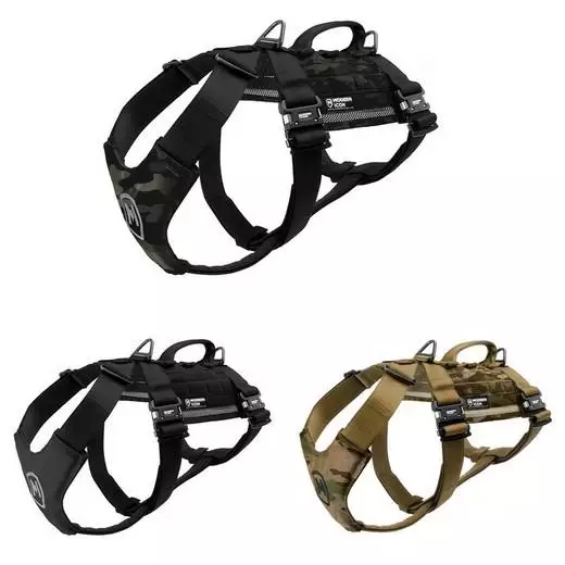 Het volgharnas is gemaakt van heavy-duty materialen en klimuitrusting volgens militaire specificaties. Hierrdoor is het het sterkste en meest duurzame tactische hondenharnas dat er is.