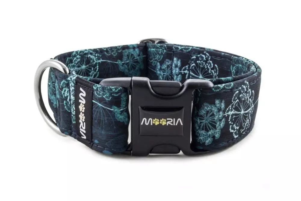 MOORIA Original Halsband Hogweed. De MOORIA halsbanden en lijnen zijn gemaakt van functionele waterdichte stoffen. De basis is gemaakt van zwaar nylonweefsel dat bedekt is met bedrukte of monochrome softshell-stof.