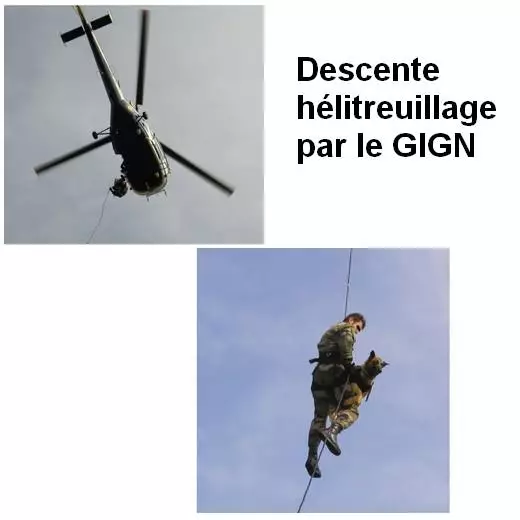 Harnas uitgerust met 4 gelaste ringen voor het vasthaken van het harnas van de man (ook gebruikt om op te hangen aan bepaalde afdalingssystemen die door de gendarmerie worden gebruikt).