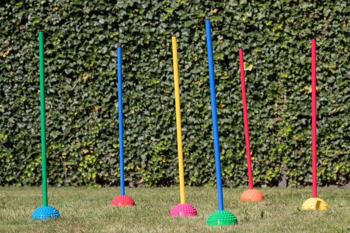 Ook stokken met een diameter van 2,5 cm passen in de egelbollen. Leuk te gebruiken voor een slalom parcours.