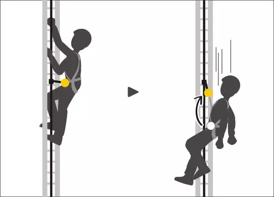 - LADDER CLIMB ventral attachment point: Connection of a positioning lanyard in single mode use, a descender, or a fall-arrest trolley