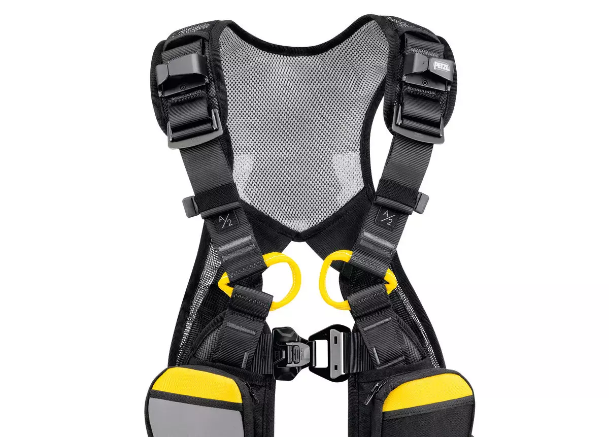 - Metal dorsal attachment point: For attaching a fall-arrest system
