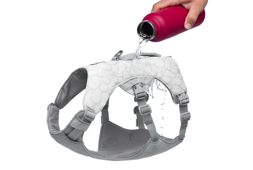Dankzij het lichte en ademende materiaal werkt het Ruffwear Swamp Cooler Cooling Dog Harnas met een natuurlijke verdampingskoeling. Door water toe te voegen aan het harnas ontstaat een verfrissend effect dat warmte beter afvoert en de hond helpt om op een veilige temperatuur te blijven. Het resultaat is een harnas dat niet alleen functioneel is, maar ook een belangrijke rol speelt in de gezondheid en prestaties van de hond.