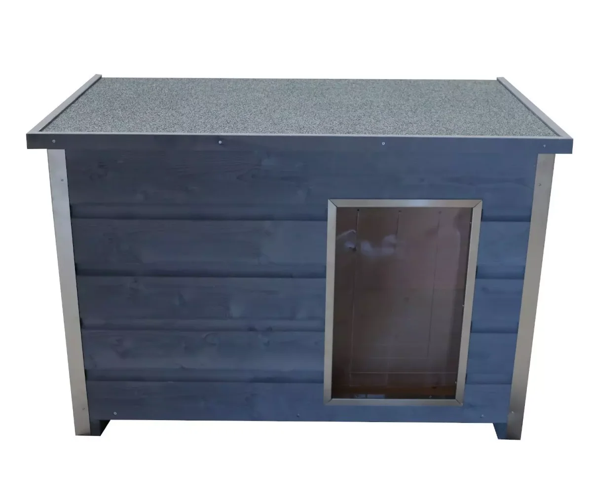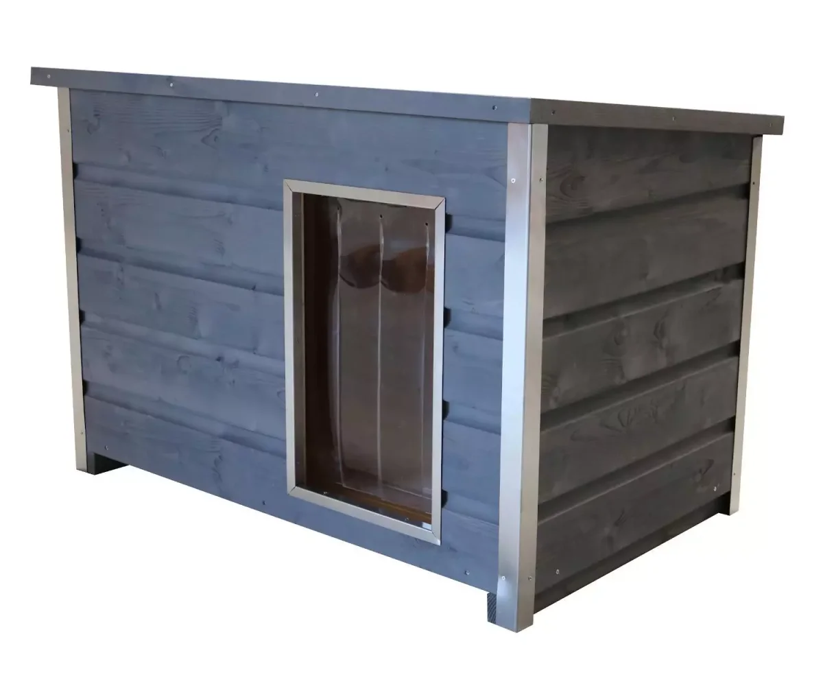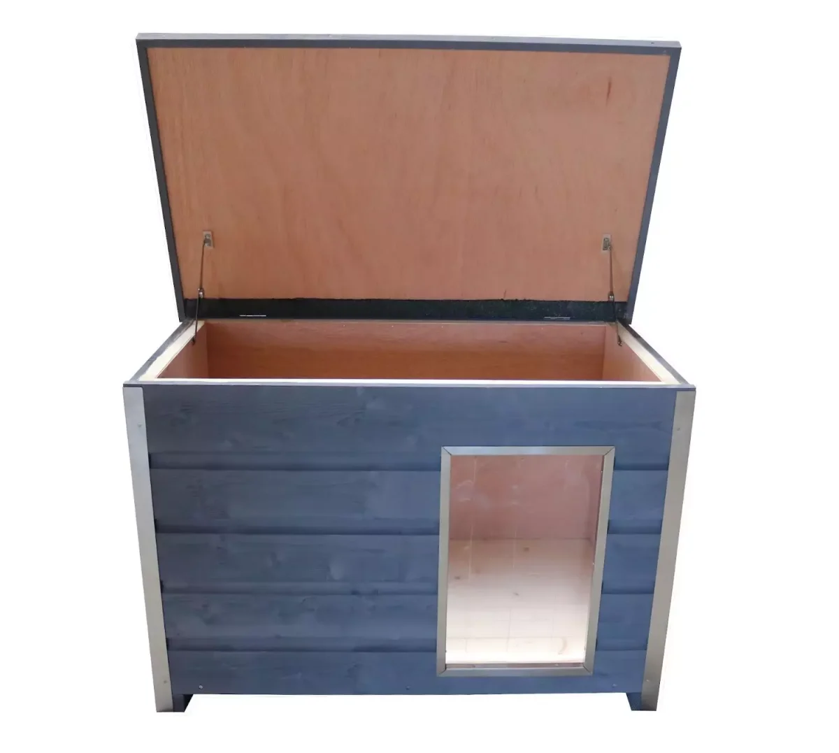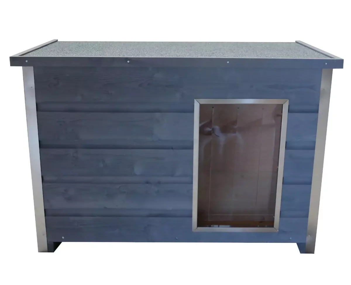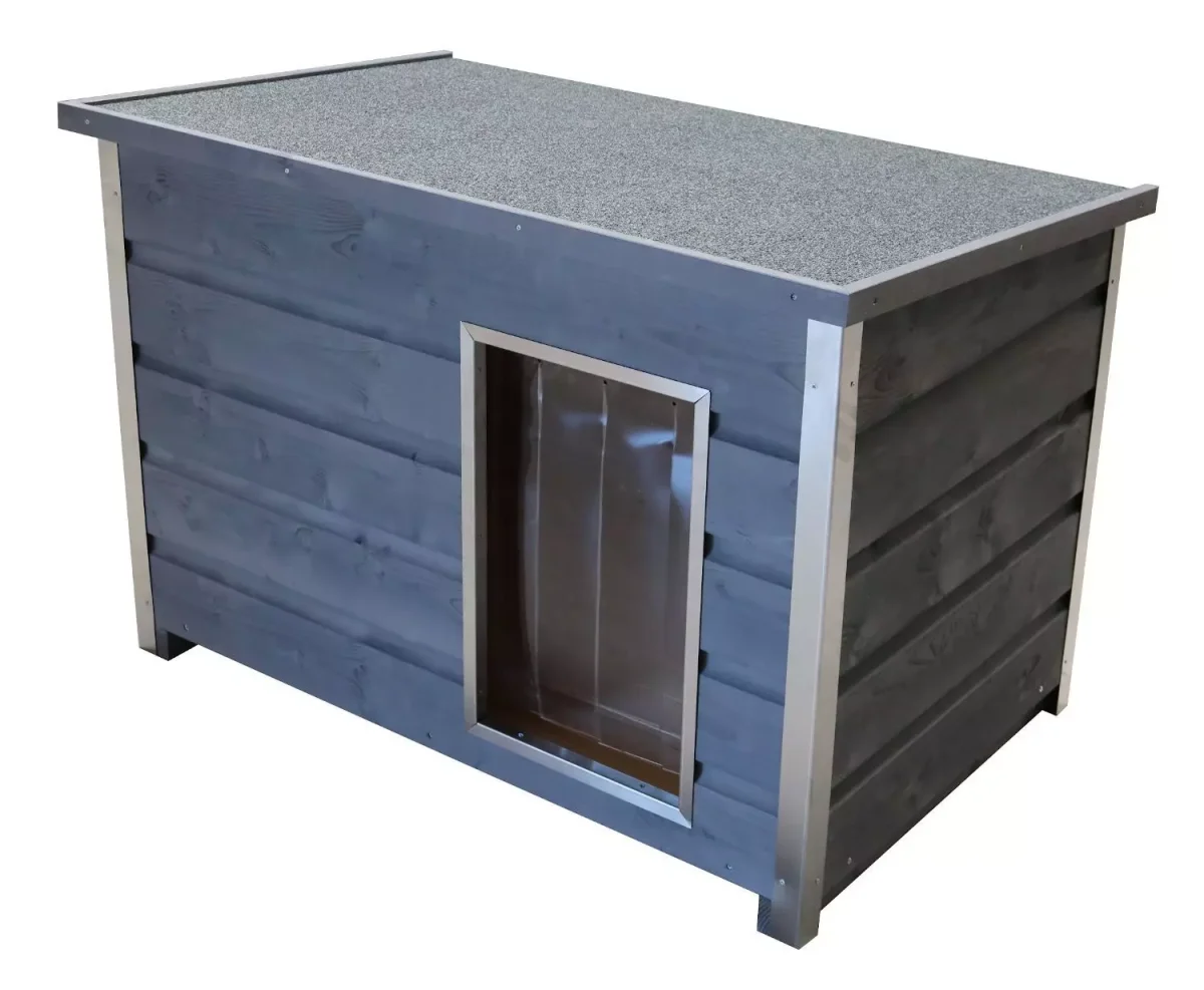 Het Weerbestendig houten hondenhok grijs is vervaardigd uit hout dat geschikt is voor buitengebruik. Hout heeft van nature isolerende eigenschappen en zorgt voor een aangenaam binnenklimaat. Dit helpt om temperatuurverschillen te beperken en verhoogt het comfort voor de hond.