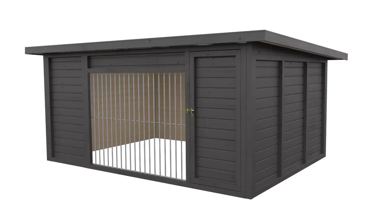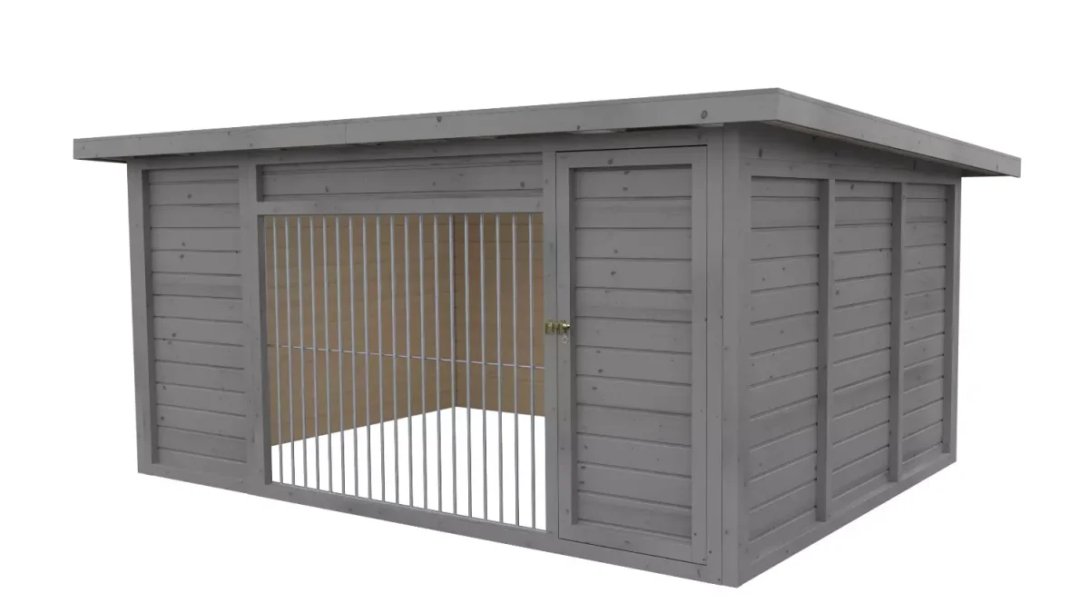 Het gebruik van hout geeft de Winterberg luxe houten kennel met pentdak een warme en natuurlijke uitstraling. Hout is niet alleen sterk en duurzaam, maar zorgt ook voor een prettige leefomgeving voor honden. Het materiaal werkt isolerend en draagt bij aan een rustige sfeer in de kennel.