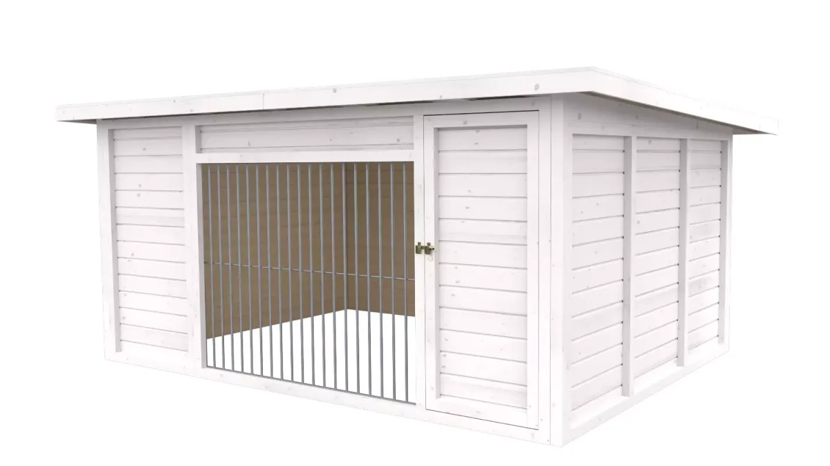 De Winterberg luxe houten kennel met pentdak is geen standaard kennel, maar een luxe buitenverblijf dat kwaliteit, comfort en uitstraling samenbrengt.